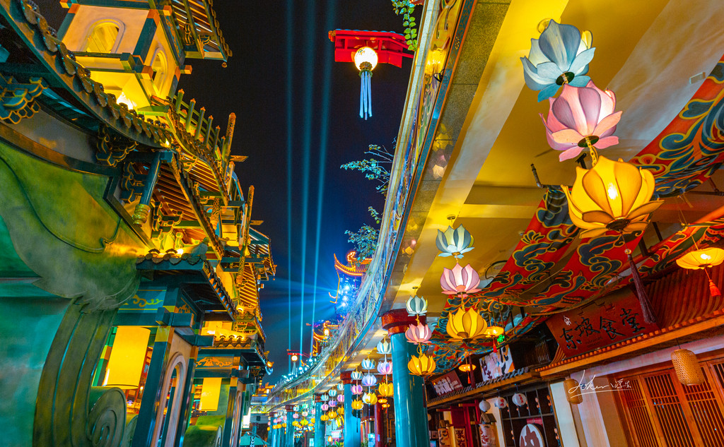 在街道中前行宛如来到了大唐盛世,处处都是张灯结彩辞旧迎新般。