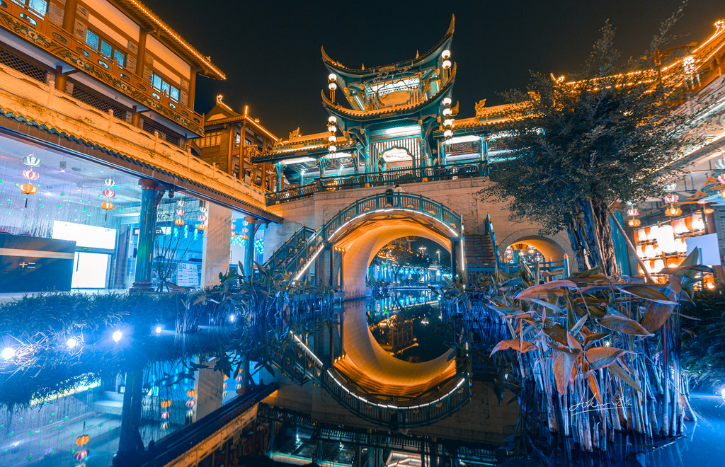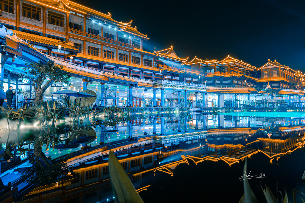 通过后期将色调风格调成赛博朋克的感觉,分享至社交网站,引来大家的啧啧称奇,都在感叹“人这么少难道是半夜去拍的?”“这色彩真有这么魔幻?”。哈哈,只能告诉大家,当你置身其中,慢慢去寻找发现,水街的夜景的确是非常有意思的。