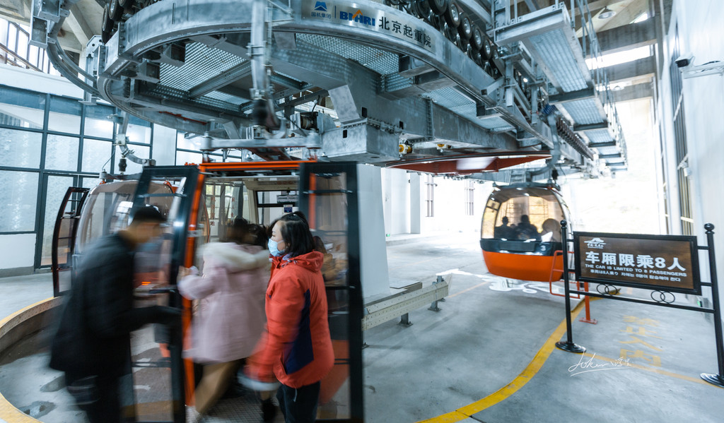 从游客中心出发,先乘坐第一段金花桥索道一路上行。