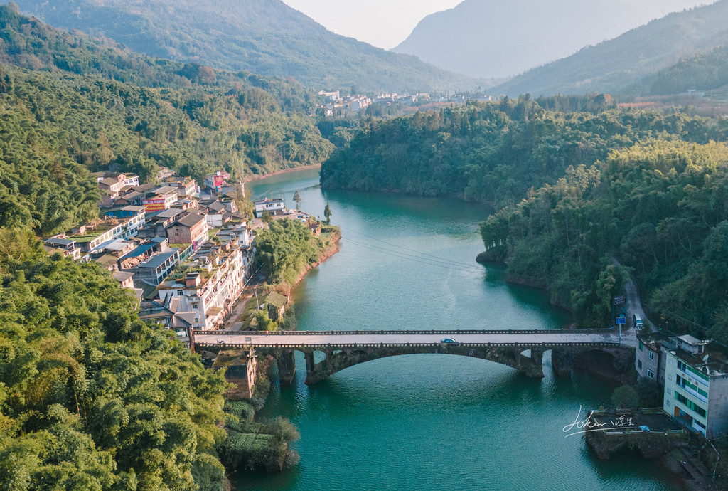 从成都出发,一路往洪雅方向行驶,下了高速之后,大概又行驶了40分钟左右的山路后,便来到了望鱼古镇。