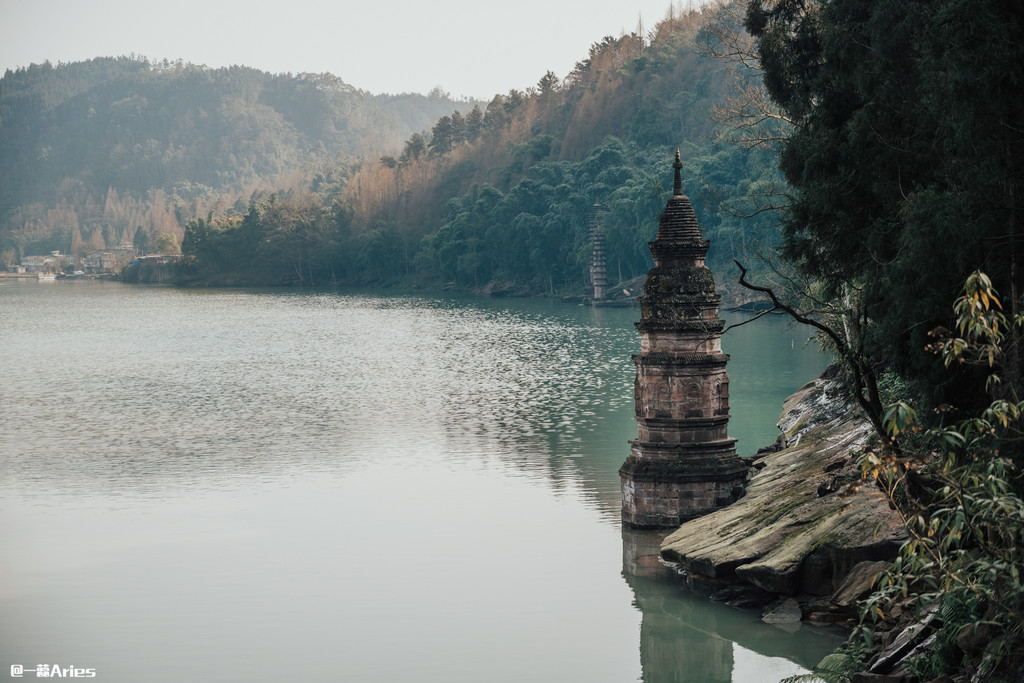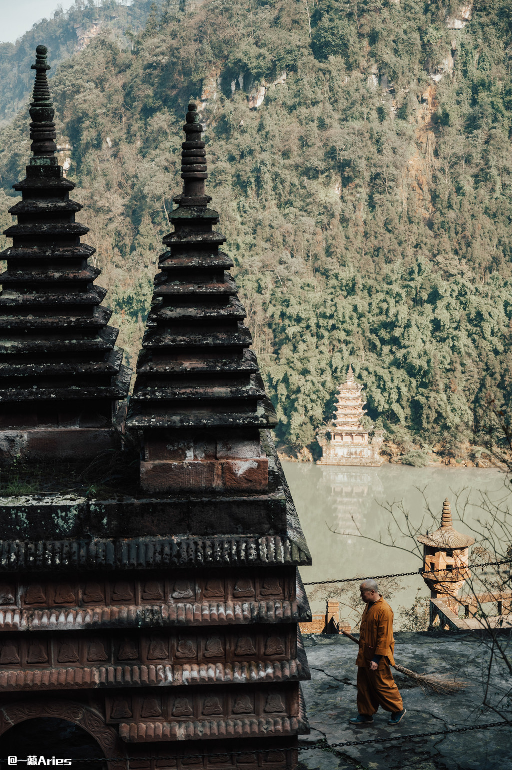 江边的佛塔更是妙哉,像是一叶扁舟飘于江上,把江峡风光完美融合。