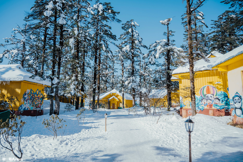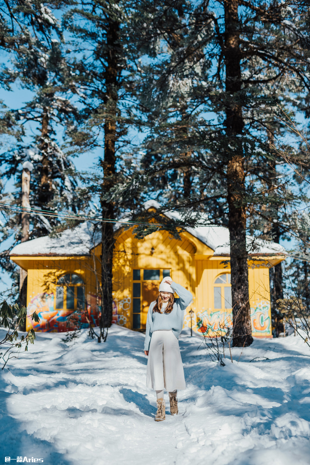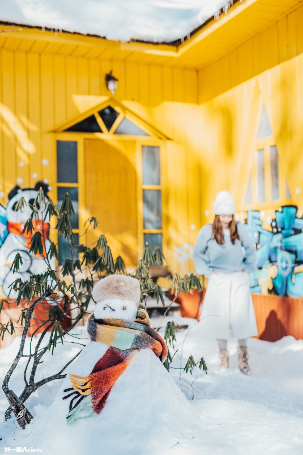 象尔山庄的黄色小木屋太好拍了,在雪屋旁和亲手堆的雪人合个影,小朋友可以假扮艾莎公主。