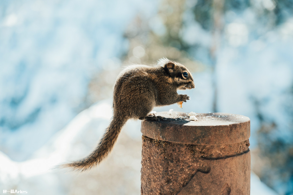 沿途除了怡人的风景,雪地中出没的小精灵们比平时更容易看到,松鼠和小鸟如跳跃的音符,与点缀在山间的雪花一起舞动。