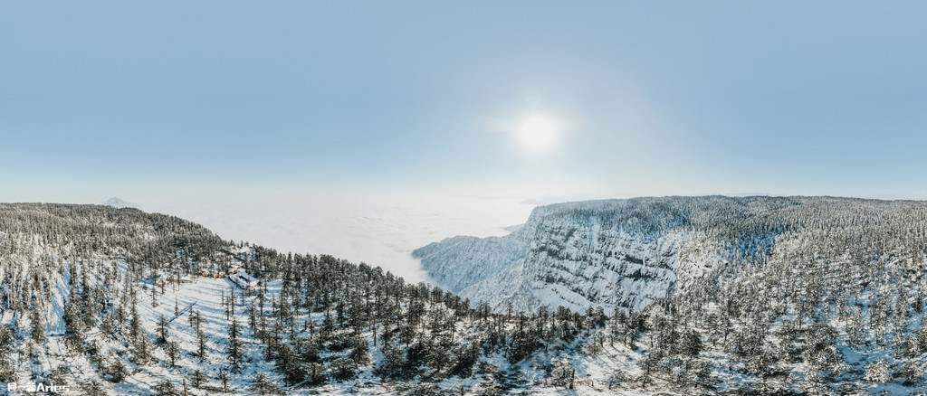 大雪的洗礼后,皑皑白雪将天地间融为一体,云雾汇聚成海,与雪山相映成趣,一切都是那么的纯净又梦幻。