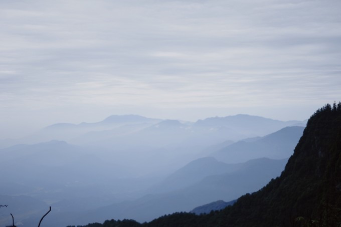 今天因为是阴天,并没有看到云海,不错层层叠叠的山峦,和天际团团的云海,也很壮观