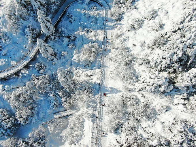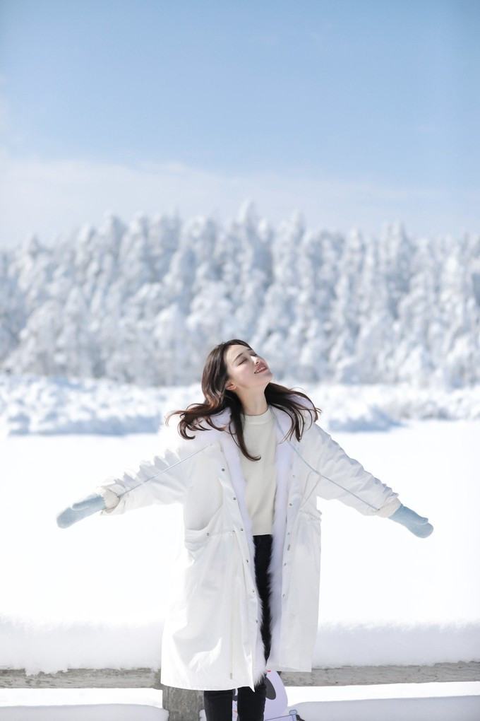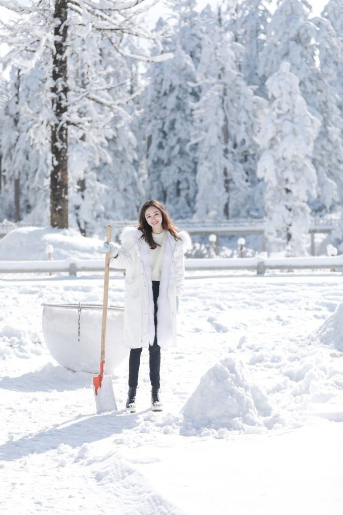 四周的树木白雪一片,全被茫茫大雪覆盖,整个画面看上去就是白色的童话世界
