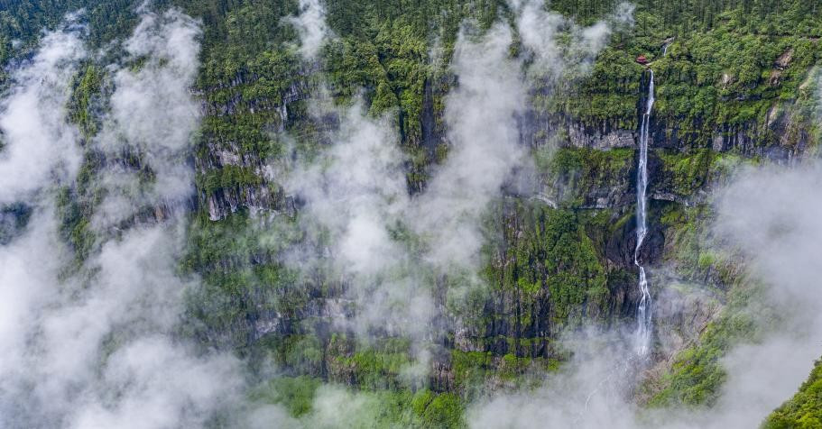 除了低山区,高山区的兰溪瀑布也是必打卡之地,瓦屋山暗河众多,山有多高,水就有多高!兰溪瀑布也被誉为世界第一高瀑,终年水流不息,形成三级落差约1040米的兰溪瀑布,将飞流直下三千零一尺的壮观之景展现得淋漓尽致。