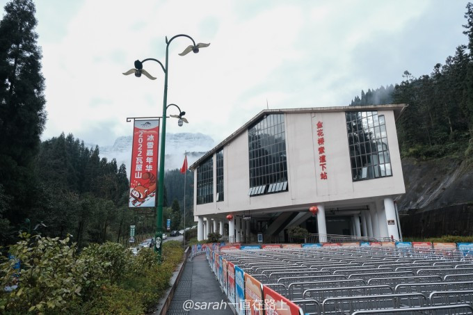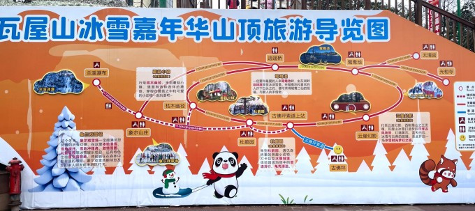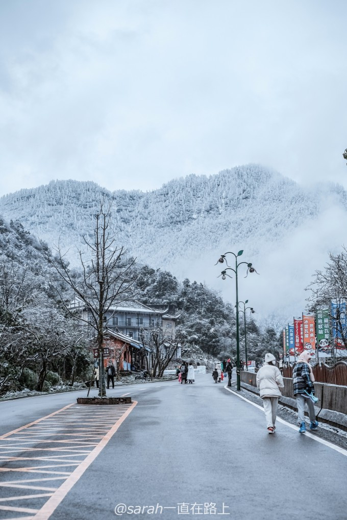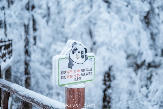索道下来就可以看到瓦屋山了,冰封的山顶在云雾中若隐若现,实在太壮观了,往古 佛坪 索道走的一路可以与憨态可掬的巨型大熊猫进行合影哦~