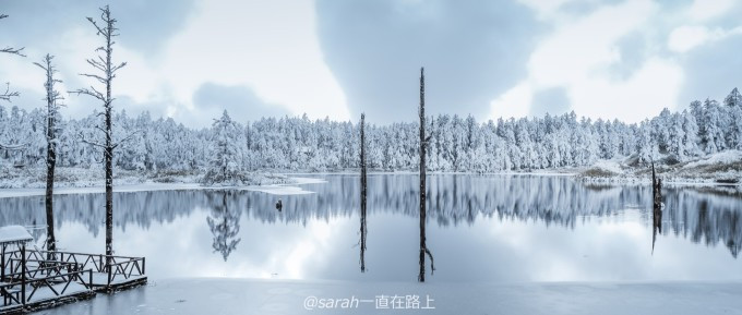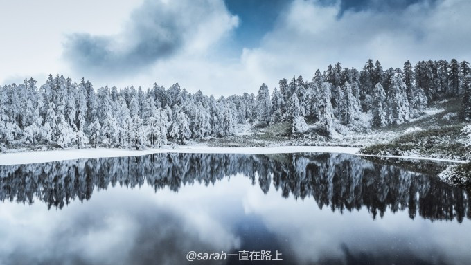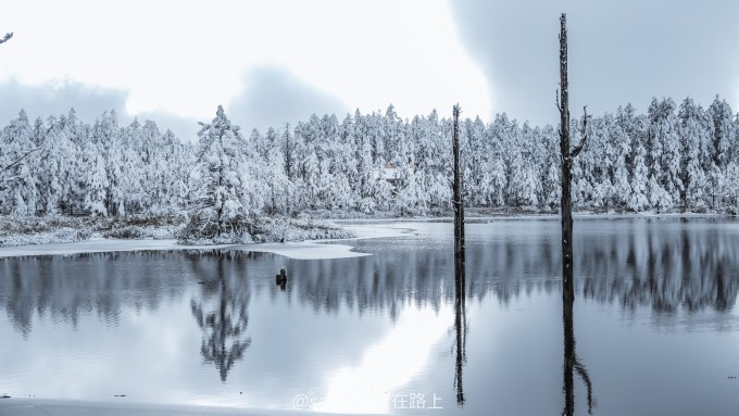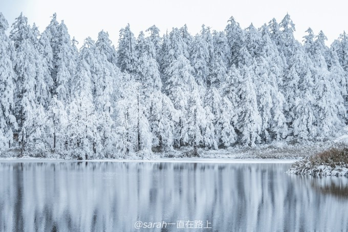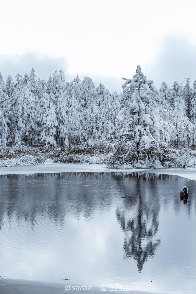 瓦屋山除了雪松云海,让我印象最深的就是鸳鸯池,冬天的鸳鸯池冰雪覆盖,12月初池水还未完全结冰,一半冰面一半倒影,这景让我想起之前在 喀纳斯 拍的风景。