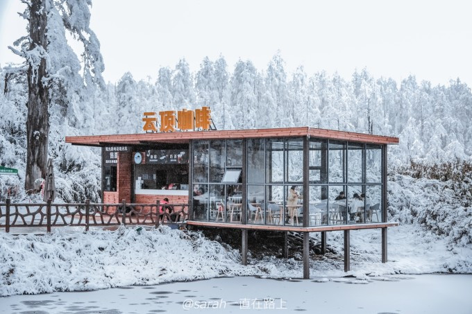 这里还有一家云顶咖啡店,坐落在湖畔,被森林包围,走累了不如来这里歇歇脚喝一杯热饮,从咖啡馆看湖景也别有一番风味。