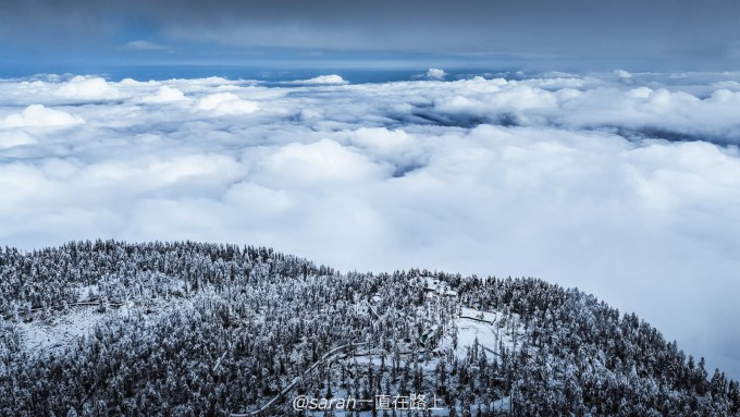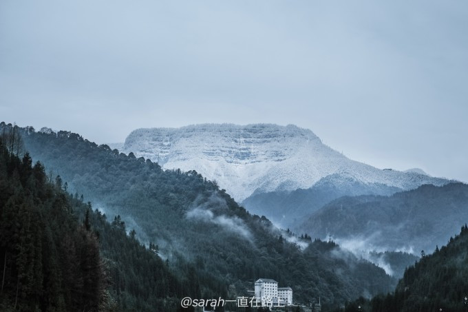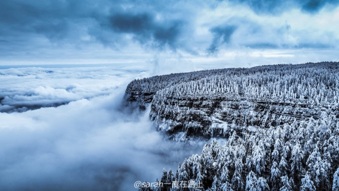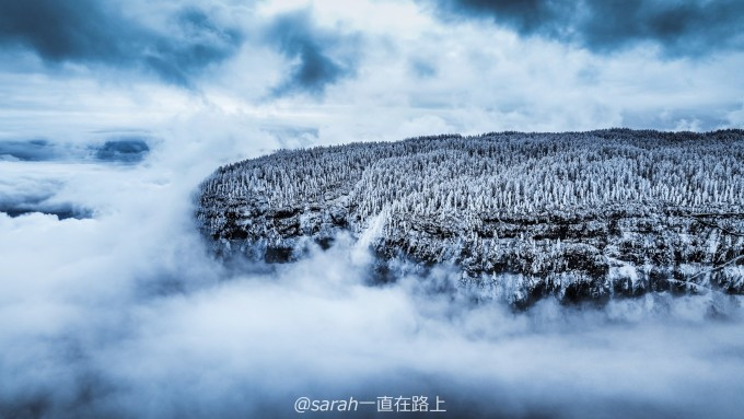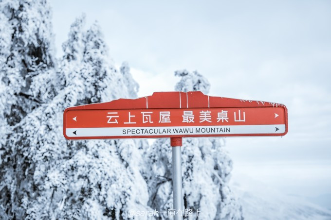 被冰雪覆盖的瓦屋山顶,远眺就明白为什么这么被称为桌山啦!