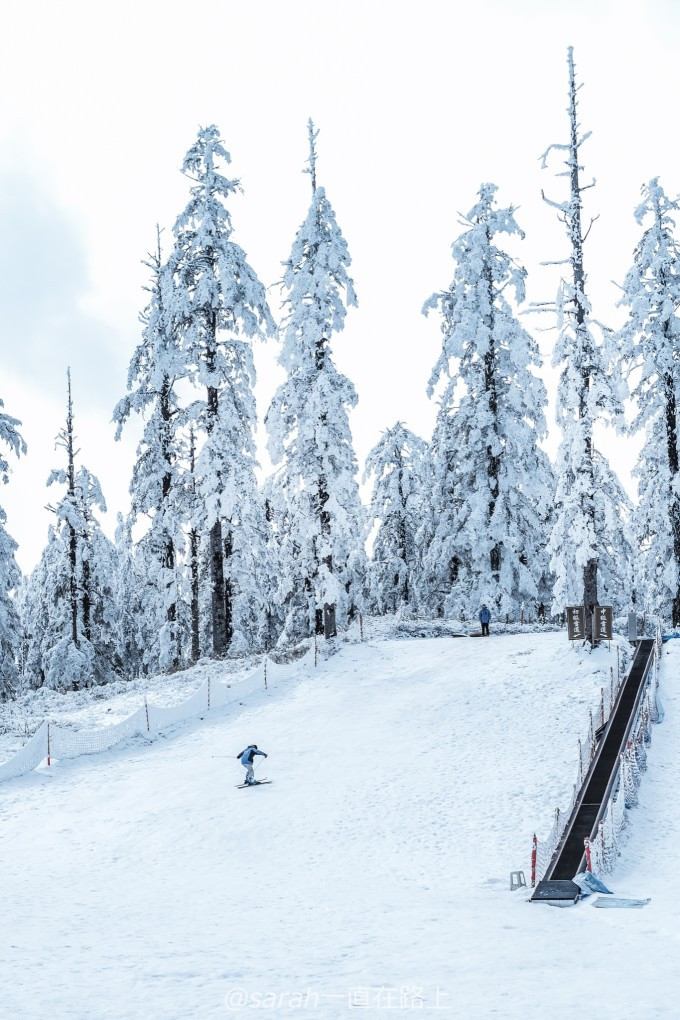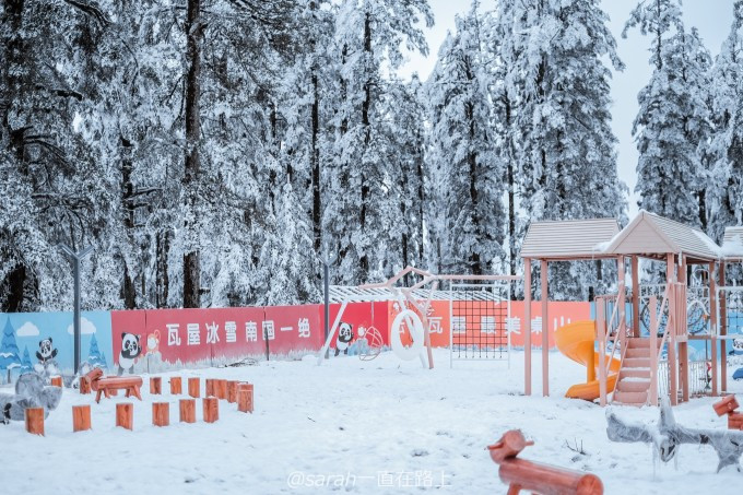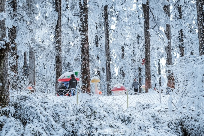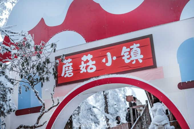 瓦屋山国家森林公园嬉雪瓦屋,嗨玩不停再往前走走到了蘑菇小镇,这里有给孩子们玩的嬉雪区,鲜艳好看的蘑菇在雪地中融为一体,小朋友可以在这里尽情的玩耍,瓦屋山很适合带孩子一起来,沿途看到很多大人带着娃一起,可以租一个滑板,小朋友坐在里面别提有多高兴,我看着都羡慕哈哈!也想租一个,这样不用一路背着包。