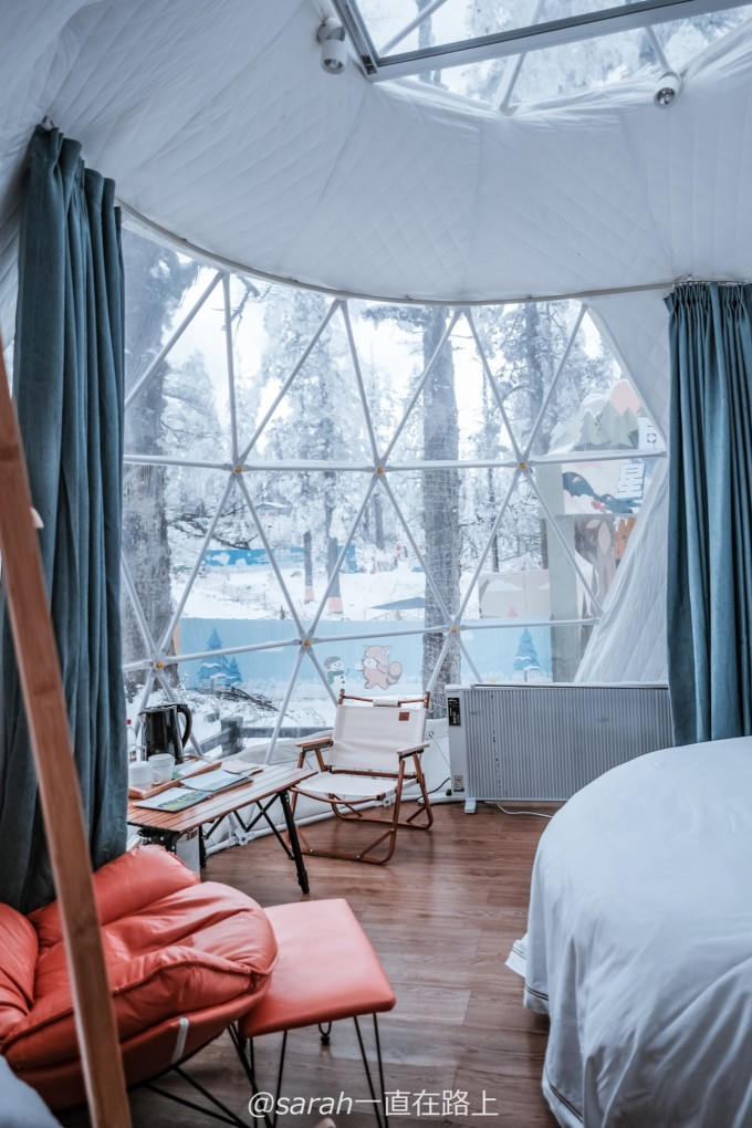 我推荐大家有机会能住在瓦屋山山顶,瓦屋山星空露营地就象尔山庄这里,大大小小的星空房分布在冷杉树下,颜色各异的营房和周围的皑皑白雪构成了一幅浪漫的雪景图,住在瓦屋山山顶可以贴近大自然 ,尤其是晚上还会听见雪掉落在房顶的声音,一早还可以看瓦屋山日出云海,太值得一住了。