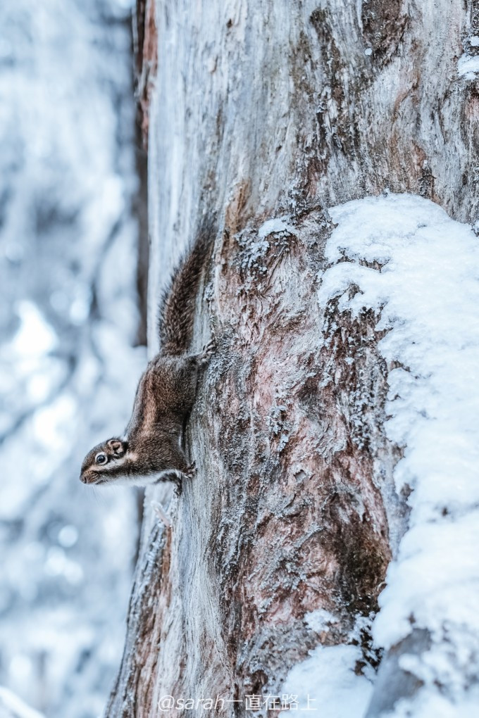 沿途边走边拍,竟然还偶遇小松鼠,这里的小松鼠一点不害怕人,特别可爱,尤其走到后半段,游客慢慢少了,森林寂静,你可以听见小鸟叫声,风吹着树叶雪落的声音。