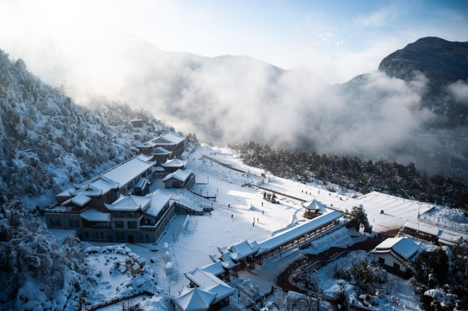 离开蘑菇小镇,来到了分叉口,往左继续去象尔山庄,往右是去鸳鸯池。象尔山庄这里有瓦屋山的天然雪场,象尔雪场设有初级和中级两条滑道,可以尽情体验滑雪,雪地摩托,雪圈等。