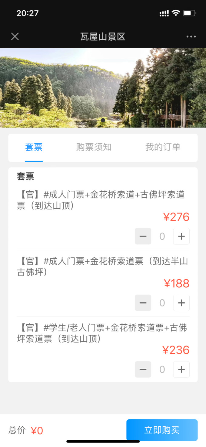 门票+金花桥索道+古 佛坪 索道往返的套票,成人套票售价:276元【推荐】
