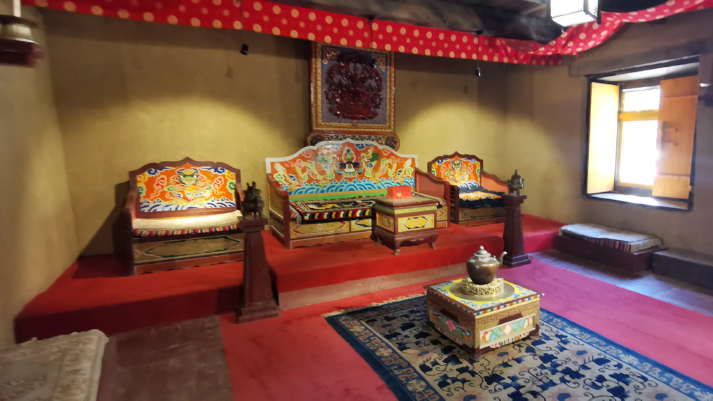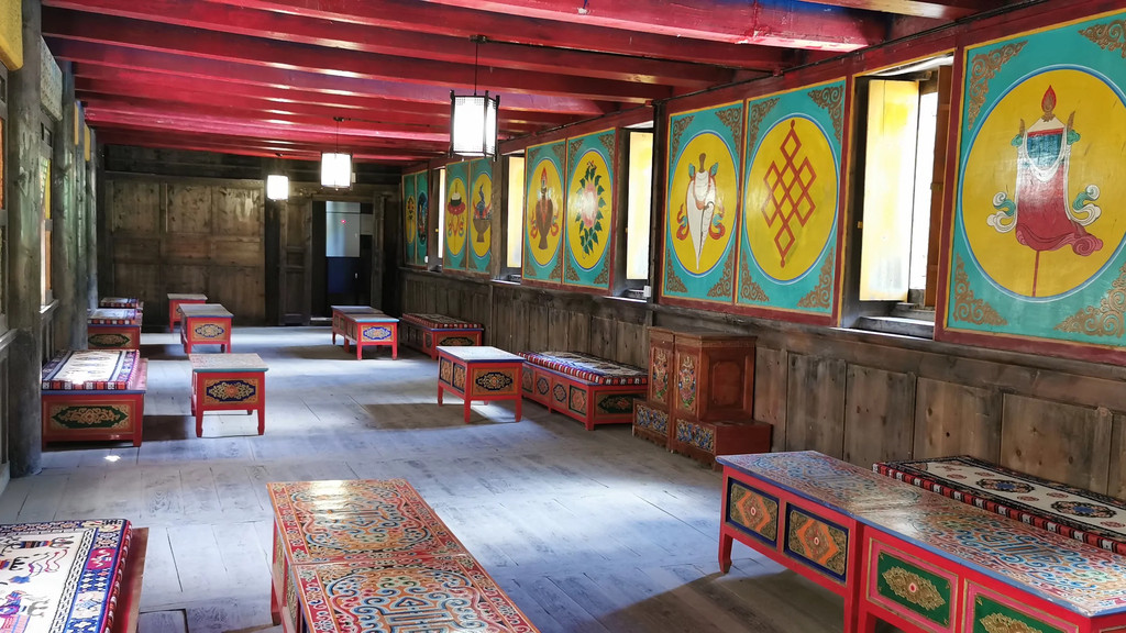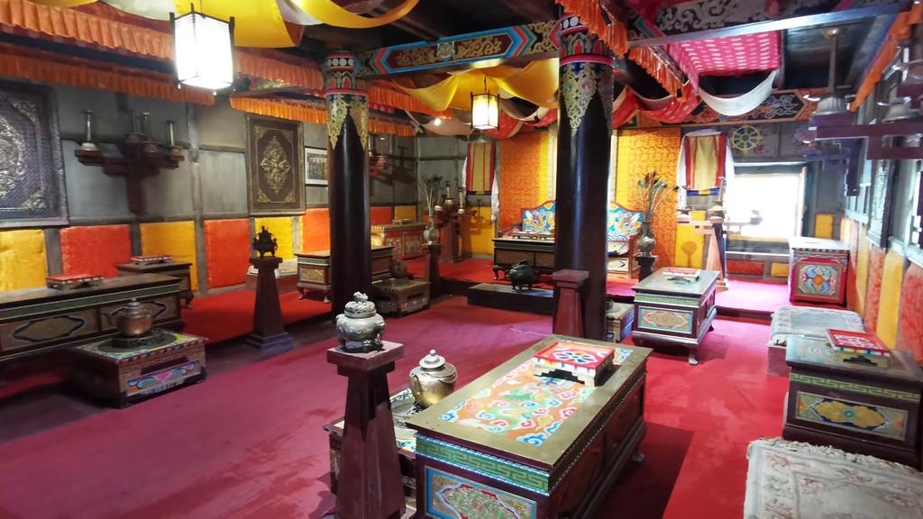 四楼及五楼有文经堂、红教殿、黄教殿、长寿殿、禁食斋、僧人住房等,展示了嘉绒藏族地区的宗教文化。