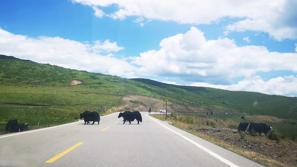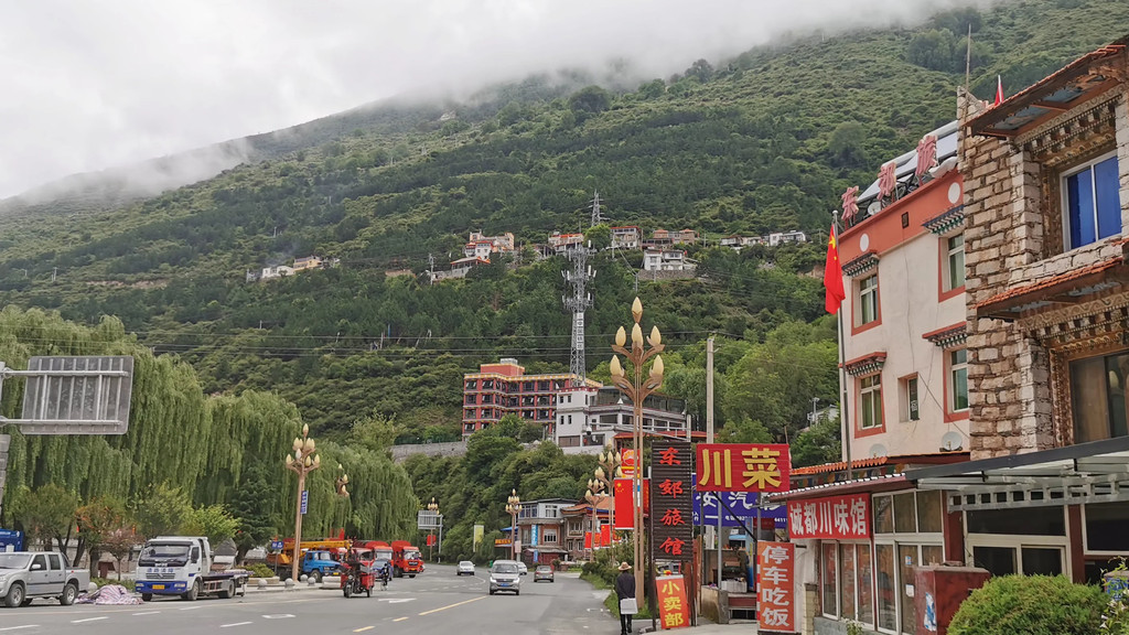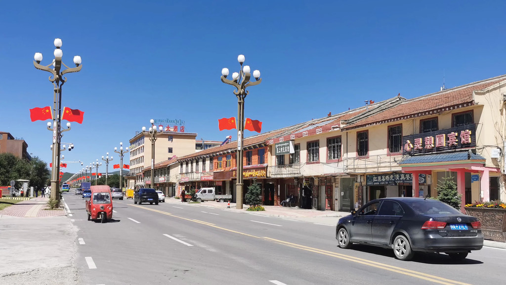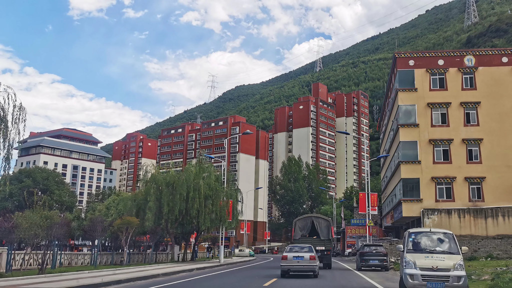 县城很小,海拔3504米,几乎没什么绿化。在路边饭馆解决中餐后,沿九红草原风光路继续向前。