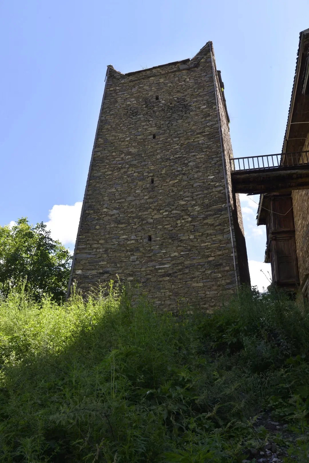 民居建筑形如碉状,也称碉楼。墙体用片石垒砌,黄泥粘合,采用内直外收的砌法,上窄下宽,厚达1米,稳定性强。