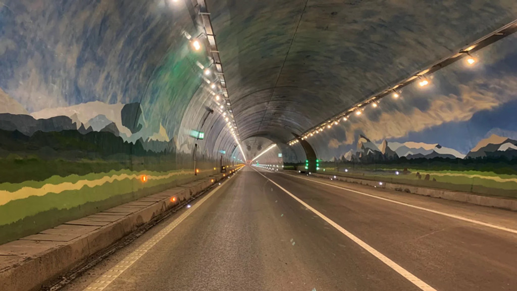 鹧鸪山隧道两侧还绘上了风景壁画,别具洞天。驴友感叹,这170多公里好像是从山洞里钻过来的。