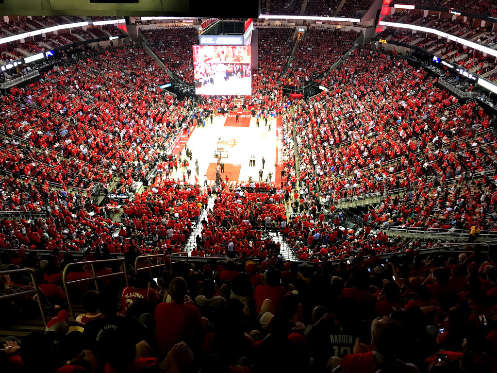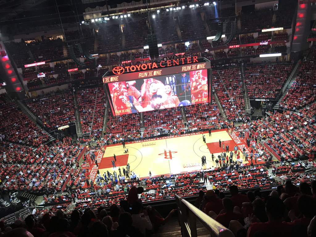 丰田中心无疑是中国人最熟悉的NBA场馆之一,因为姚明曾经是这里的主人。现场看一场NBA,亲身体验一次欧洲顶级足球联赛是我的梦想,而这一次的休斯顿之行恰逢季后赛第一轮第二场休斯顿火箭VS俄克拉马荷雷霆,哈登和威斯布鲁克的对决,能看上我也算幸运的了!现场的气氛不如想象中狂热,我们的位置又是最差的那种,再加上一个无素质的傻妞始终站着看球,长焦镜头又不让带进场,漂亮的NBA宝贝只能看着个影子,整场比赛下来没发现那个是威少,结果只能是NBA我来过了。