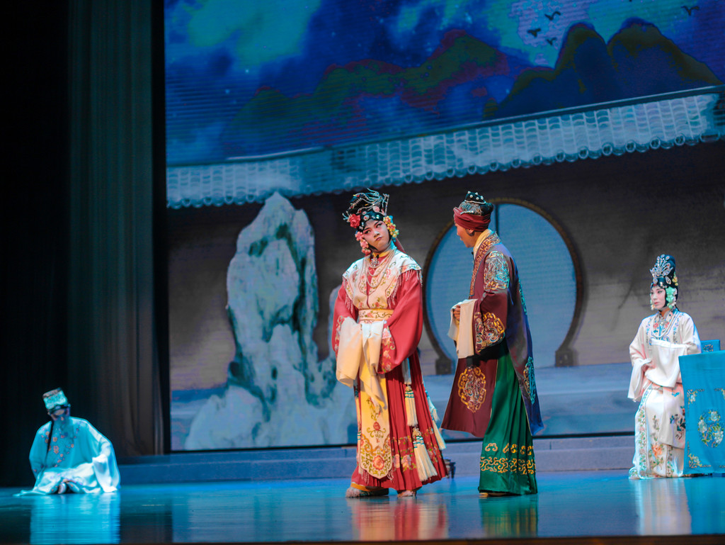 紧接着就是淮剧,淮剧,又名江淮戏、淮戏,是一种古老的地方戏曲剧种,发源于今江苏省淮安市以及盐城市里下河一带,发祥于近现代的上海市,现流行于江苏省、上海市以及安徽省部分地区。淮剧说的是建湖话、唱的是建湖腔,所以整出戏,对于我们这些外行人来说,不看字幕几乎是听不懂的,但淮剧又很悲情,高亢激越,诉说性强,演员的表演功力、唱功那是相当了得,令人声泪俱下又不禁拍手叫好。