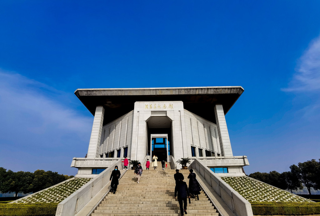 整个纪念馆由一组纪念性建筑群、一个纪念岛、三个人工湖和环湖四周的绿地组成,我们参观主要集中在位于中轴线上的纪念性建筑群里,分别到纪念馆瞻仰周总理雕塑并鞠躬,之后来到周总理铜像广场,最后参观了仿西花厅参观。
