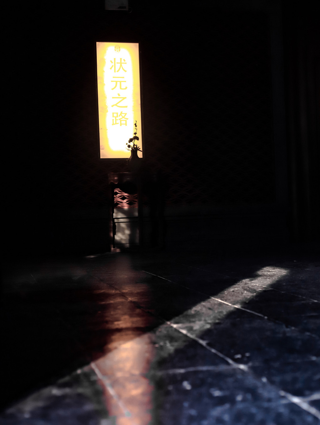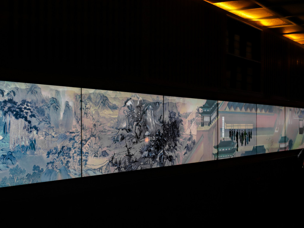 再向后走就来到了向学区,向学区由涌云楼和蕴墨楼组成。涌云楼里最有意思的是《状元之路》,通过科技电子手段,在三面墙上详细展示了古代读书人从幼时入学拜师、十年寒窗苦读、辞别家人赶考到金榜题名、进行殿试、参加琼林宴等内容,栩栩如生,非常直观,电子手段的干预,更能让大家静下心来聆听和学习,非常有意义。
