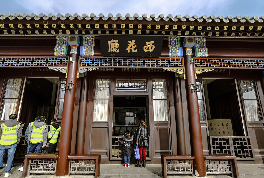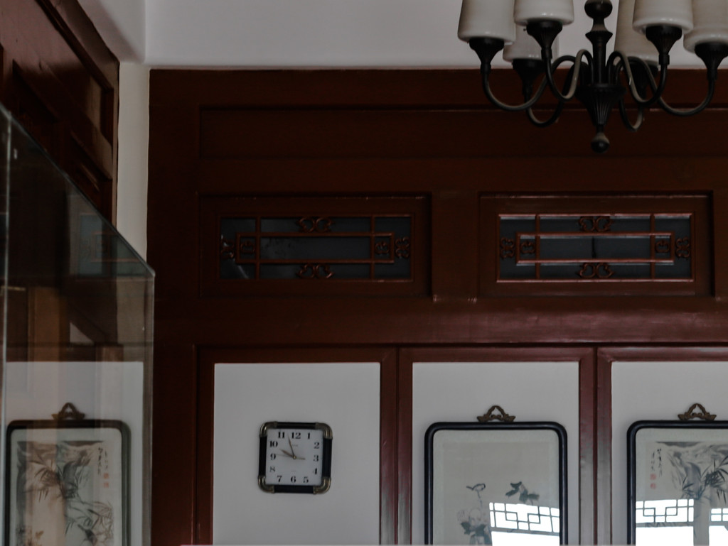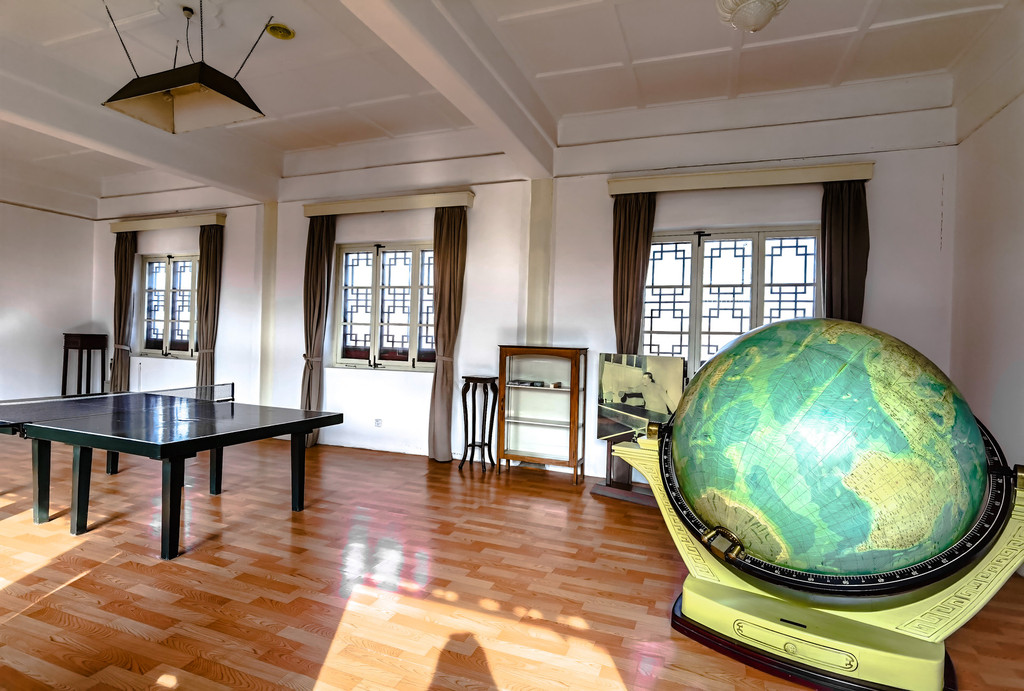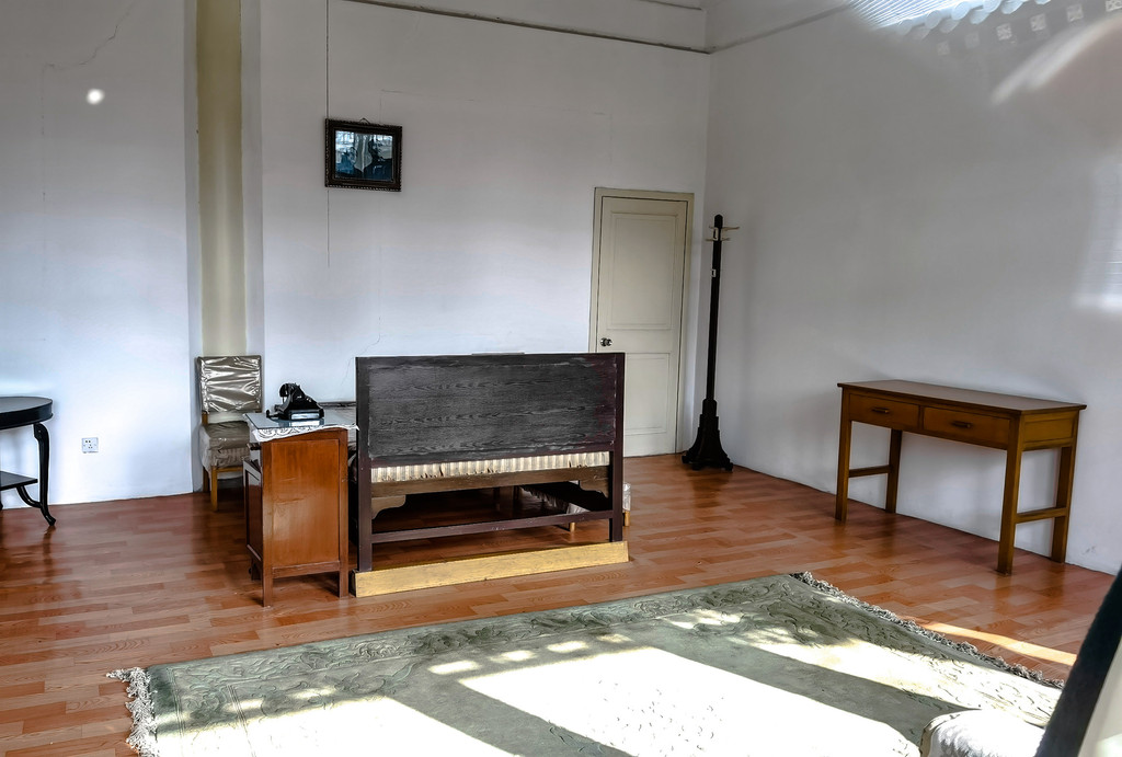 铜像身后就是西花厅了,这座西花厅是仿建北京中南海的西花厅,处于最前边的主建筑就是西花厅,也就是北京“西花园”的主建筑,它是周恩来当年会见外宾、举行重要国事活动的主要场所。而且是一比一比例还原的的,里面的摆件、地毯、灯饰、文物等,大多都是周总理曾经使用过的。在西花厅正厅的左上角挂了一个时钟,时钟指向的时刻,正是总理与世长辞的那一刻。而正厅的地毯,也是总理曾经在北京中南海西花厅使用过的,导游说这个地毯本来是红色的,但随着时间的洗礼,如今这几块地毯已然逝去了它的光华,完成了它的历史使命。