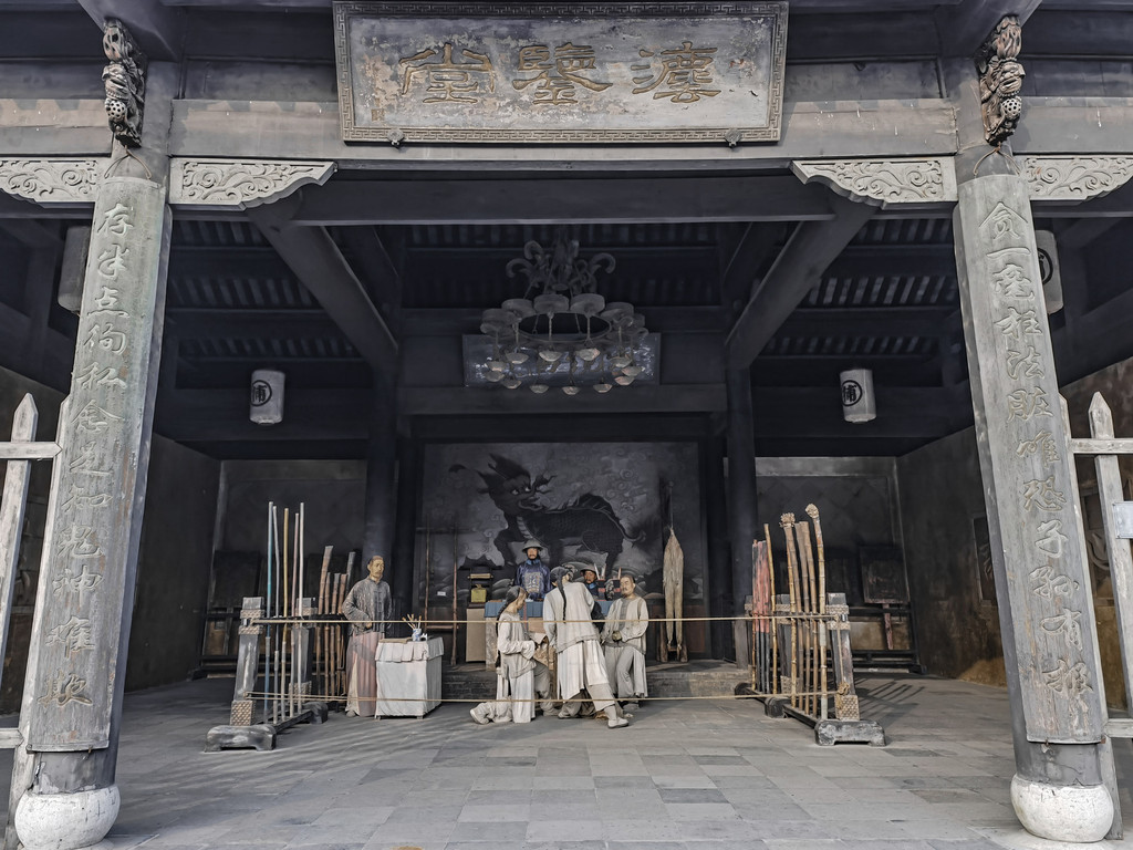 淮安是运河名城,地处水运要冲,自古富庶繁华,所以淮安府署的建设规模要比其他府一级的衙门大得多。规模庞大,气势雄伟,是我对这座府署的直观印象。走进府署,一个非常开阔的院子呈现在我们眼前。这也是我国目前现存最大的府衙大堂,当年历届淮安知府在这里办公、迎接圣旨,举行大型庆典,审理重大案件,就在这里进行。