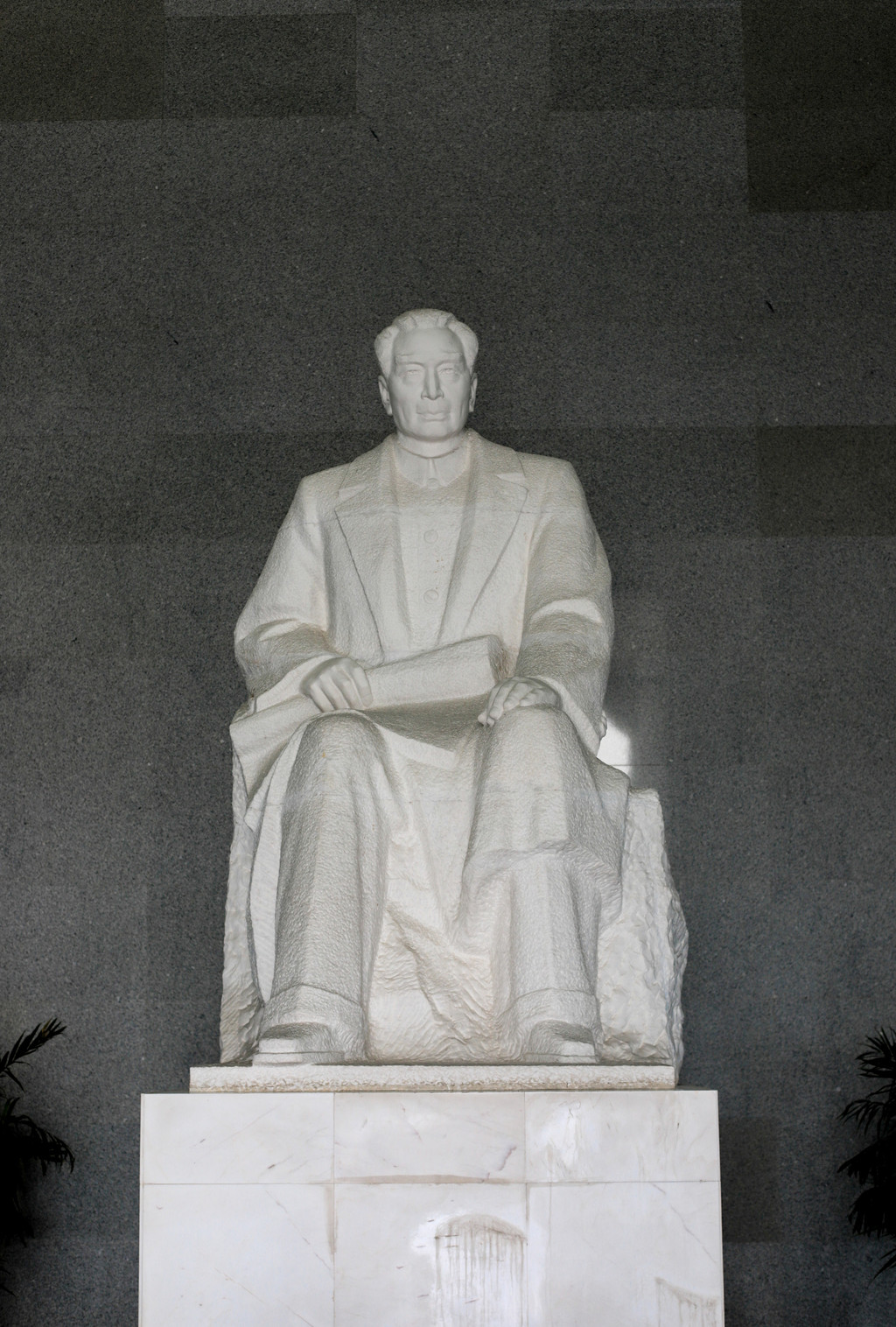 登上楼梯来到大厅,这里有一座总理的汉白玉坐像,连基座高4.7米,我们在这里瞻仰这座汉白玉雕塑,雕塑眉清目秀,还原度极高。在这里,我们共同三鞠躬,来一起怀念这位伟大的人民的总理。