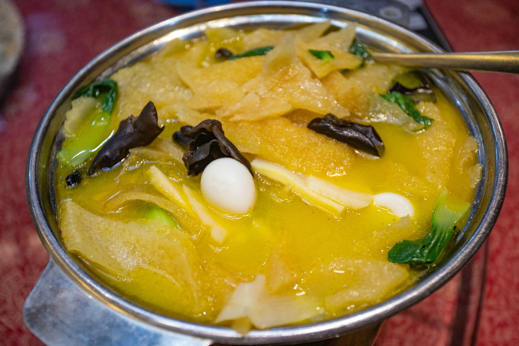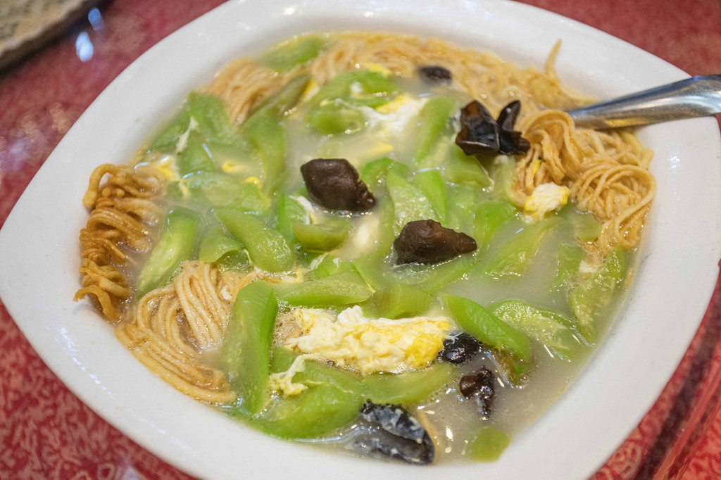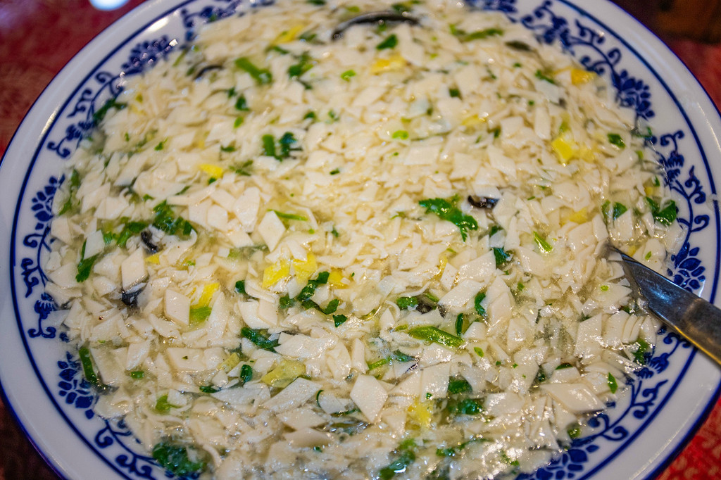 软兜长鱼,这道菜在在淮扬菜中是最负盛名的一道菜肴,也是江苏十大经典名菜之一。我们在淮扬菜文化馆品尝到的第一道美食就是这道美食了,不得不说确实很考验刀工,而且口感软嫩异常,清鲜爽口。该菜的功效是补虚养身调理,以及在气血双补,营养不良,产后恢复等方面都有功效。