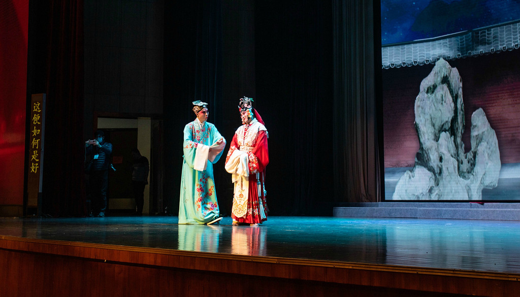 找到位置做好,就是一系列的演出登台亮相,比如一些戏剧,诸如《西厢记》选段等等,我们这些观众看的是如痴如醉,不知不觉间居然都天黑了。