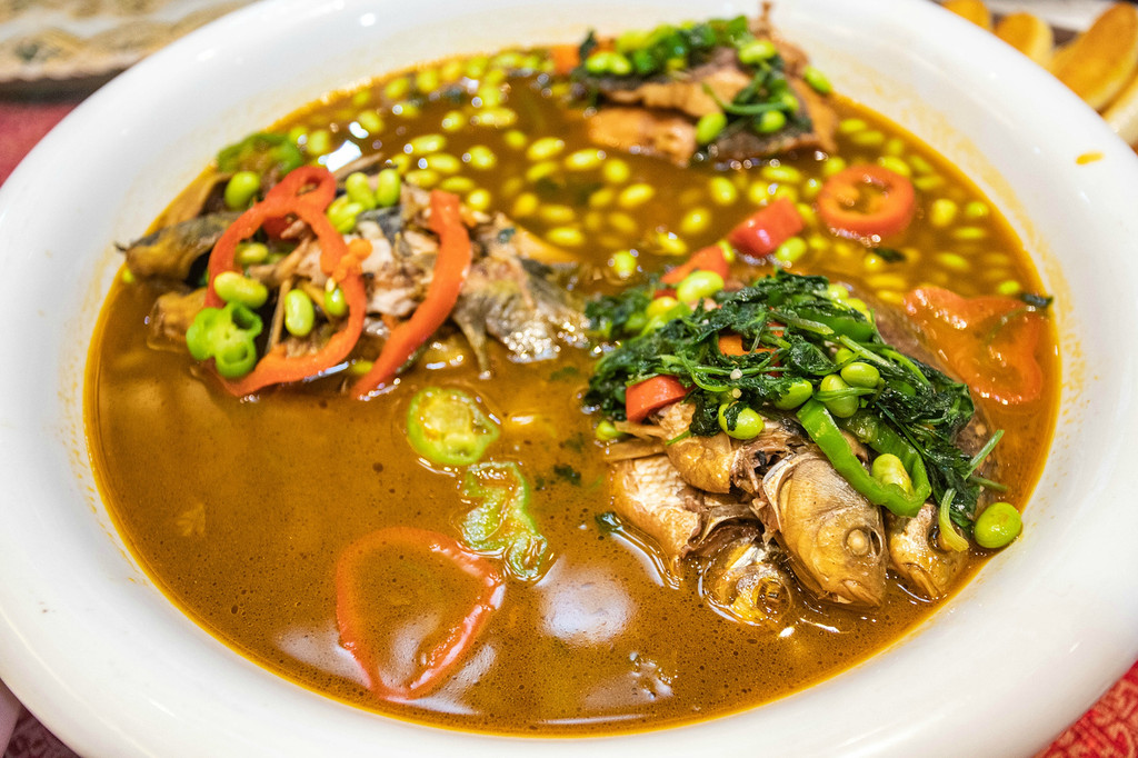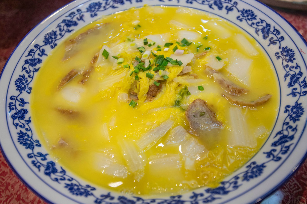 平桥豆腐,看名字这似乎是一道普普通通的美食,其实这道菜品看成是淮扬菜系的扛鼎之作。它采用了内脂豆腐,将其切成一致的菱形小块,配以鸡肉丁、香菇丁、香菜沫,用鲫鱼脑起鲜,因其起锅时淋了一层明油看似不冒热气,其实很烫,一定要小心慢用。