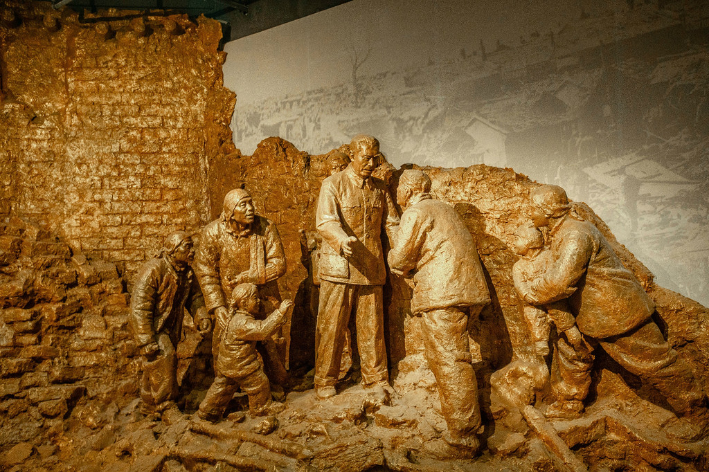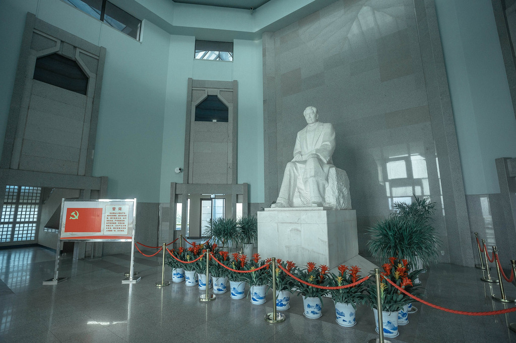 主馆的大厅内设总理全身汉白玉座像一尊,连基座高4.7米。在展厅里对着总理的雕塑鞠躬致意以后,还可以去三层的观景平台看一看。这里不但非常安静,而且还可以远眺一下古城和馆区的风景,绚烂而又夺目。