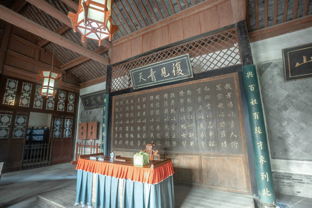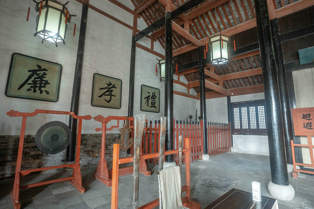 整个衙门的核心便是大堂,步入大堂,首先看到的是由皇帝钦赐、南宋思想家朱熹撰写的“忠爱”二字的匾额,这两个字的意思就是忠于皇帝,爱护子民。