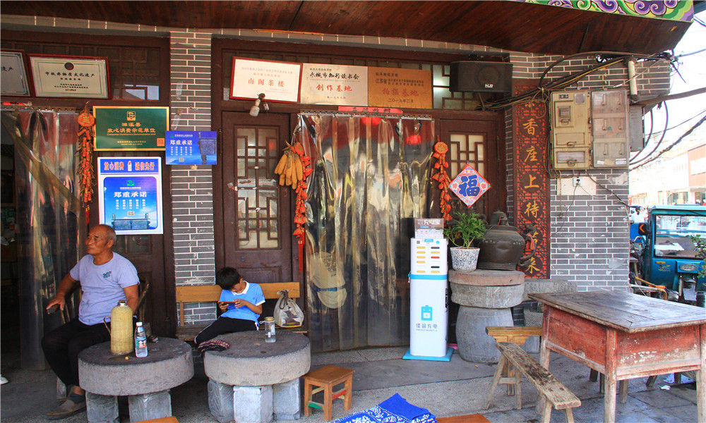 临涣现存二十余家老茶楼,最有名的两家是南阁茶楼和怡心茶楼。这两家茶楼坐落在同一条街上,历史都超过百年,门面同样简朴。