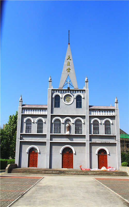 在由一座座青灰色屋顶和院墙搭建的大背景之中,矗立着两座同样年深日久的尖顶建筑,是镇上的天主教堂和基督教堂。