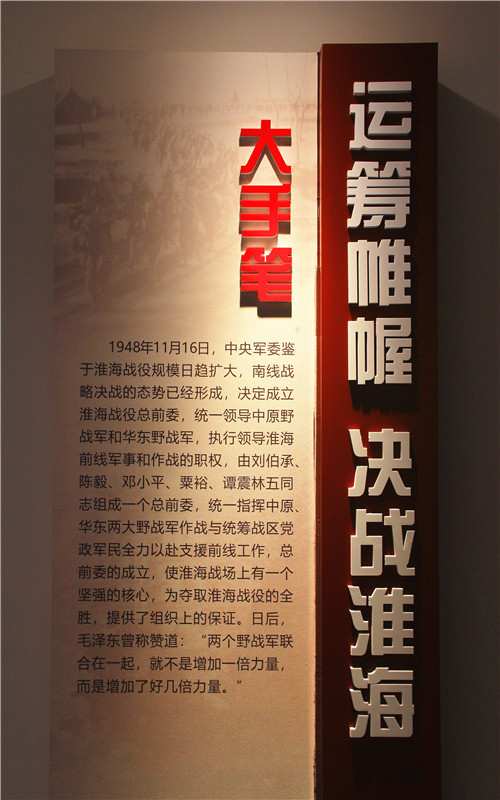 淮海战役纪念馆,介绍淮海战役的主要经过和参与战役的解放军、刘伯承、邓小平等领导人。