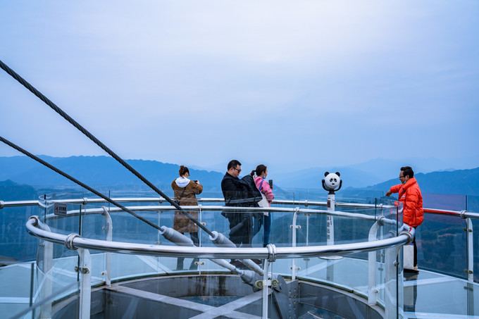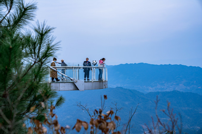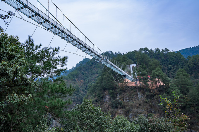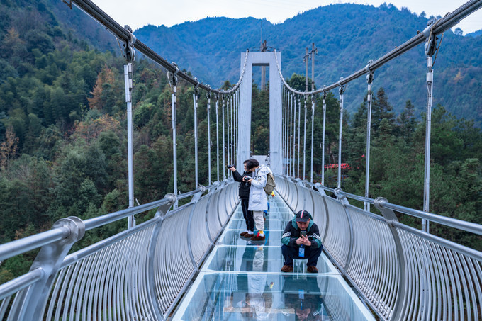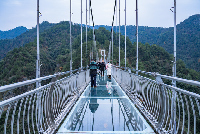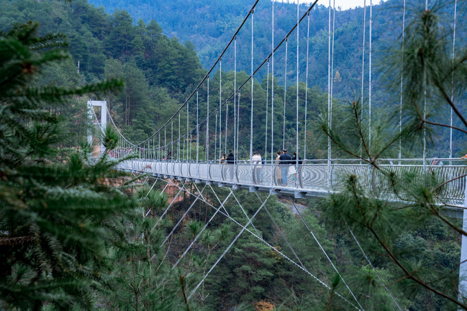 依山造势,穿岩山的玻璃桥相比其他景区更加的刺激,整条玻璃桥悬挂在两条山壁之间,因为桥身特别的长,山谷之间有风吹过,桥身左摇右晃,在加上脚下是透明的玻璃,惊险程度更胜一筹。