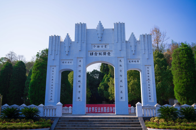 芷江受降纪念坊:建于1946年2月,是中国人民抗日战争胜利的标志,是中华民族伟大不朽的历史丰碑,是世界反法西斯战争胜利的重要历史见证,是全球六座凯旋门(罗马、柏林、米兰、巴黎、芷江、平壤)之一。坊上嵌刻有蒋中正、李宗仁、何应钦、白崇禧、于右任、孙科、王东原、居正、王云五等军政要人的题词和《芷江受降坊记》206字铭文。坊上铭文的文采、对仗、用典有着耐人寻味的赏析价值。
