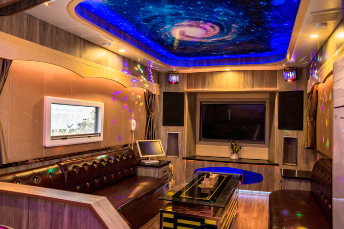 晚上宿在千里古寨,这里有房车营地,装修的都十分的舒适,还有专门K歌的酒吧车,非常的新奇。