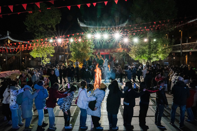 晚上的瑶寨更加的热闹,丰盛的瑶寨美食过后,便是热闹非凡的篝火晚会。