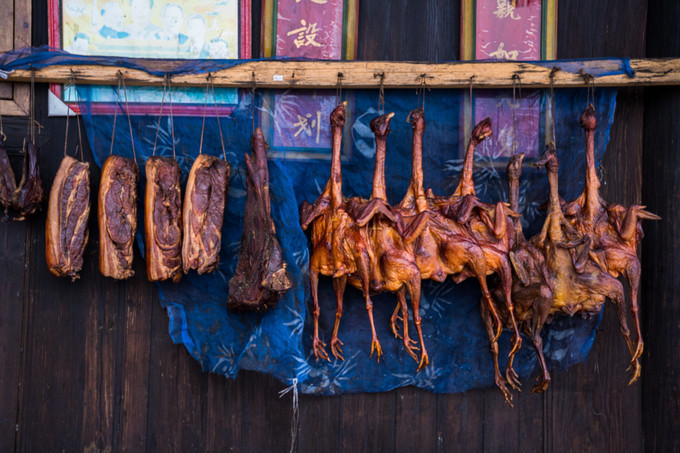 游走在古村中,屋檐连着屋檐层层叠叠,村民们都十分的热情,家里特制的腊肉制品挂满墙壁,让古色古香的村落又增添了不少的烟火气。