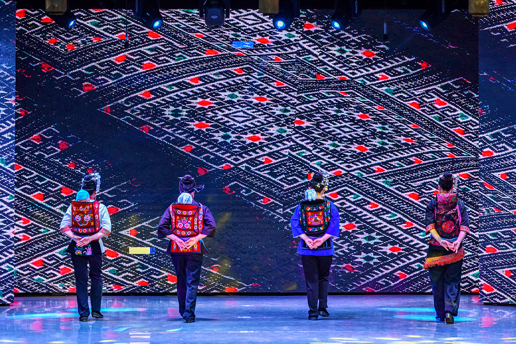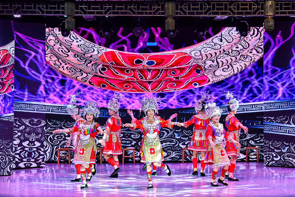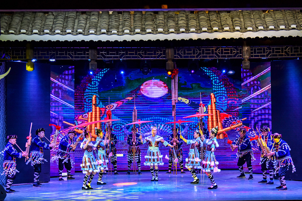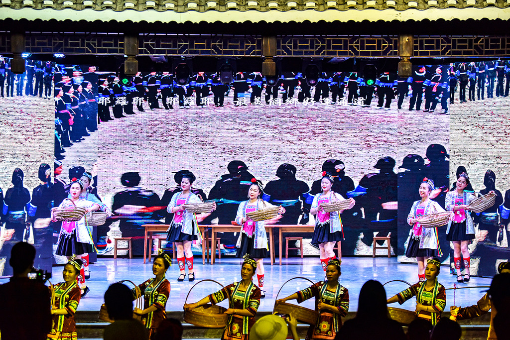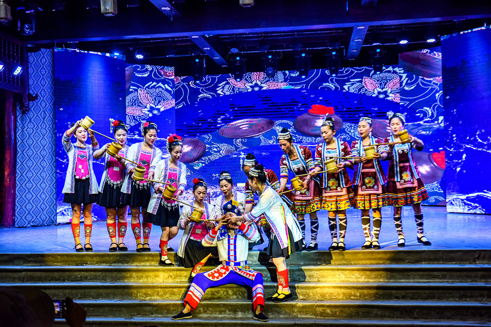 演出中各种高尖端舞美,音效设计与多个非遗项目融入其中,在这里看到的侗族芦笙、侗族大歌、侗族琵琶歌、侗锦等,都有了另一番震憾。