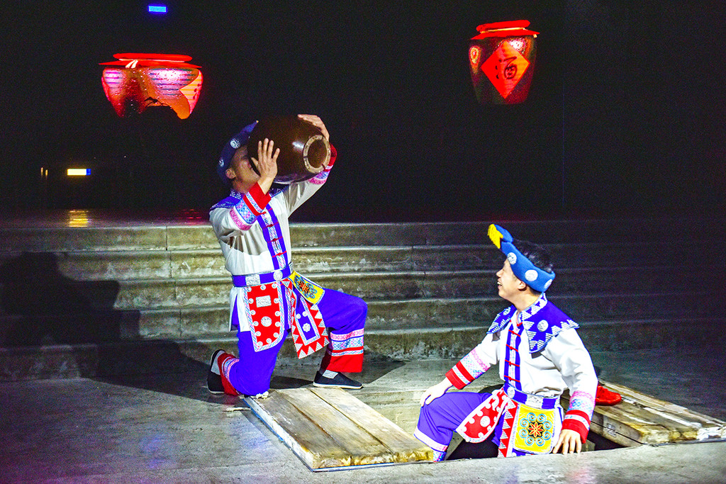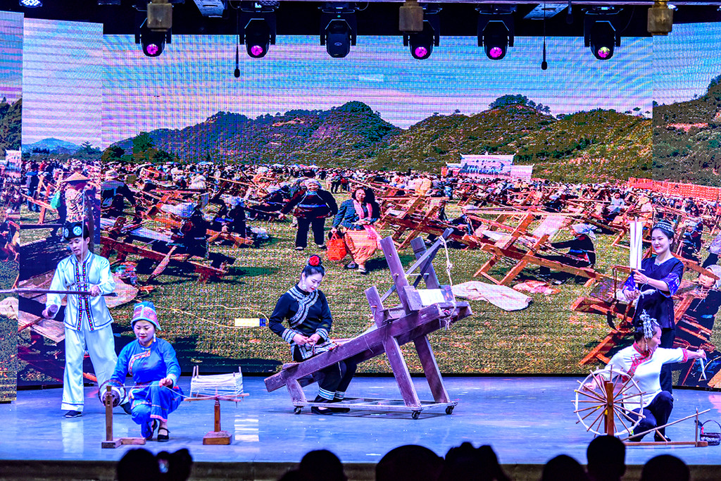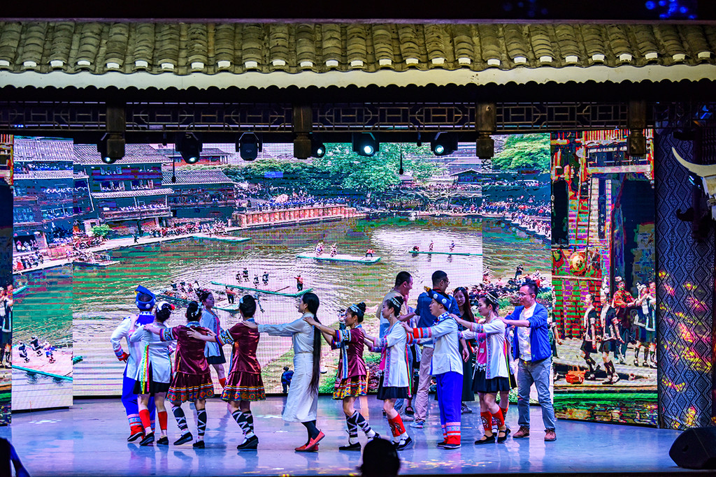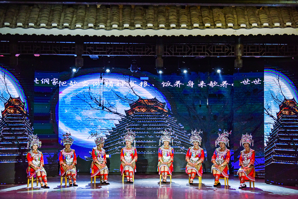 演出中各种高尖端舞美,音效设计与多个非遗项目融入其中,在这里看到的侗族芦笙、侗族大歌、侗族琵琶歌、侗锦等,都有了另一番震憾。