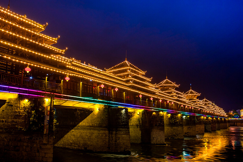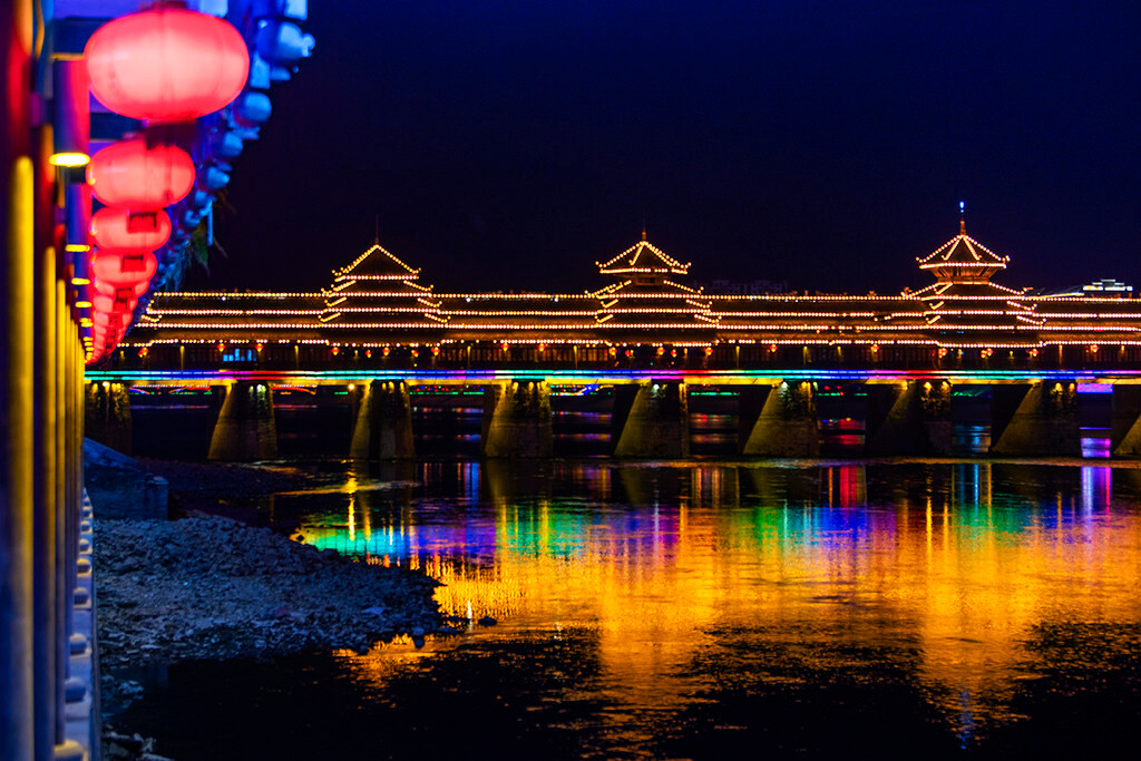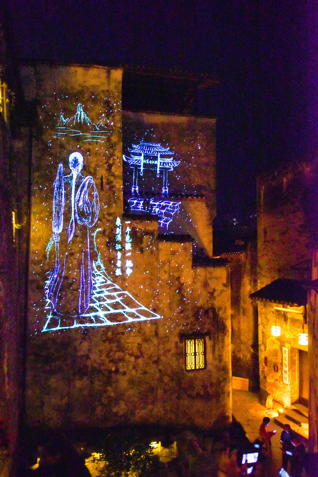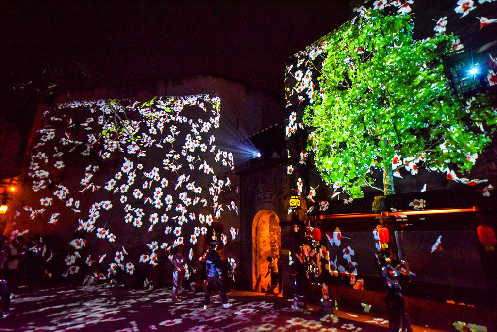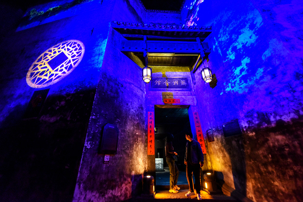 文创灯光秀是一场古老与现代的交织艺术秀,沧桑古墙为布,绚丽灯光为墨,浓墨重彩的动态灯光,绚丽的景观灯光美仑美奂。随着画面变换,明清时期商贾重镇洪江列肆如云、会馆林立的盛景再现,千年古商城的“前世今生”娓娓道来,犹如一幅直观的明清社会市井全貌的“清明上河图”。
