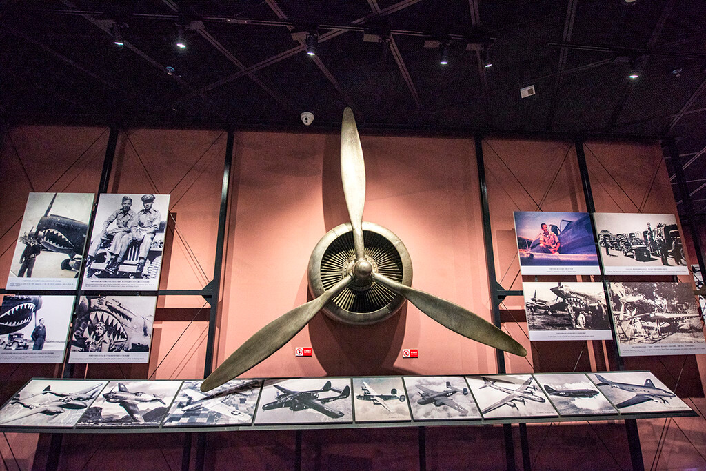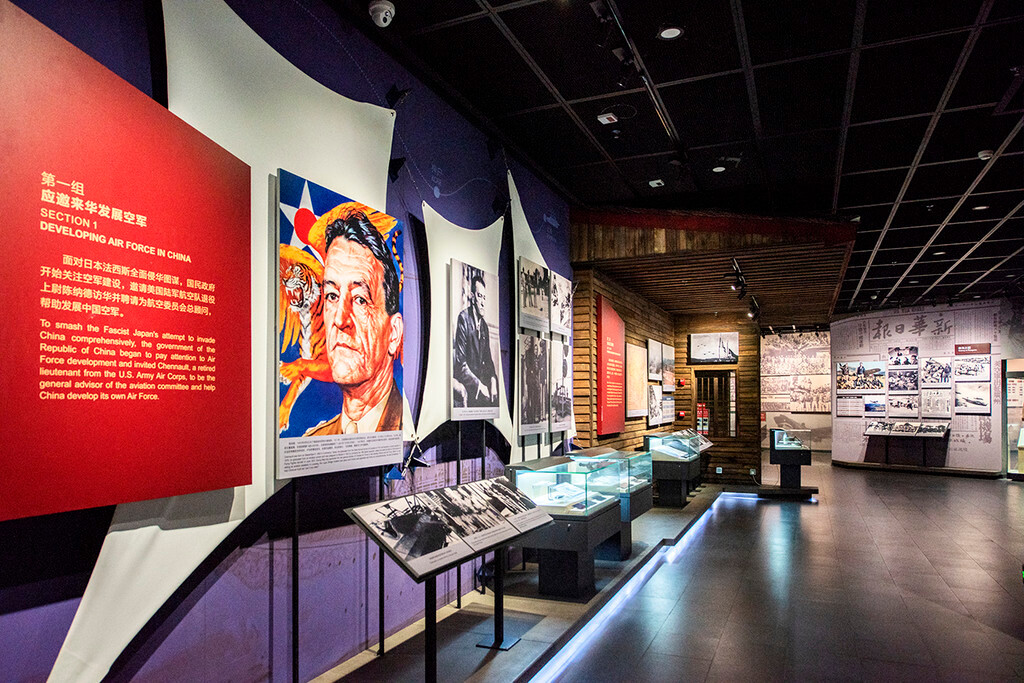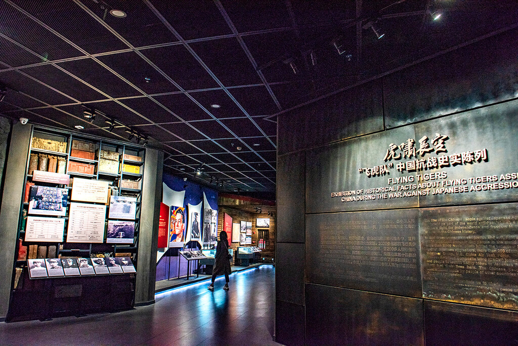 飞虎队纪念馆里设4个展厅,以高科技手法做了场景复原,并且用大量的图片,实物真实展现了飞虎队在抗战期间的生活场景,以及各种英勇事迹。飞虎队战机,飞虎队用过的实物,那些见证历史的实物向我们娓娓讲述着那段沉重的历史。