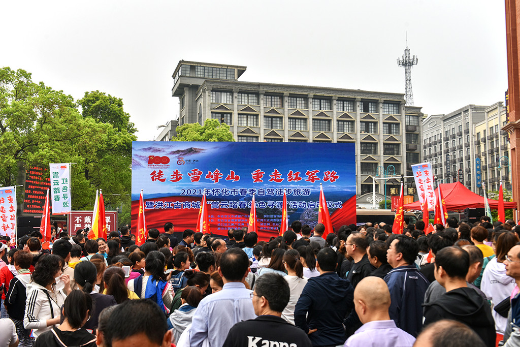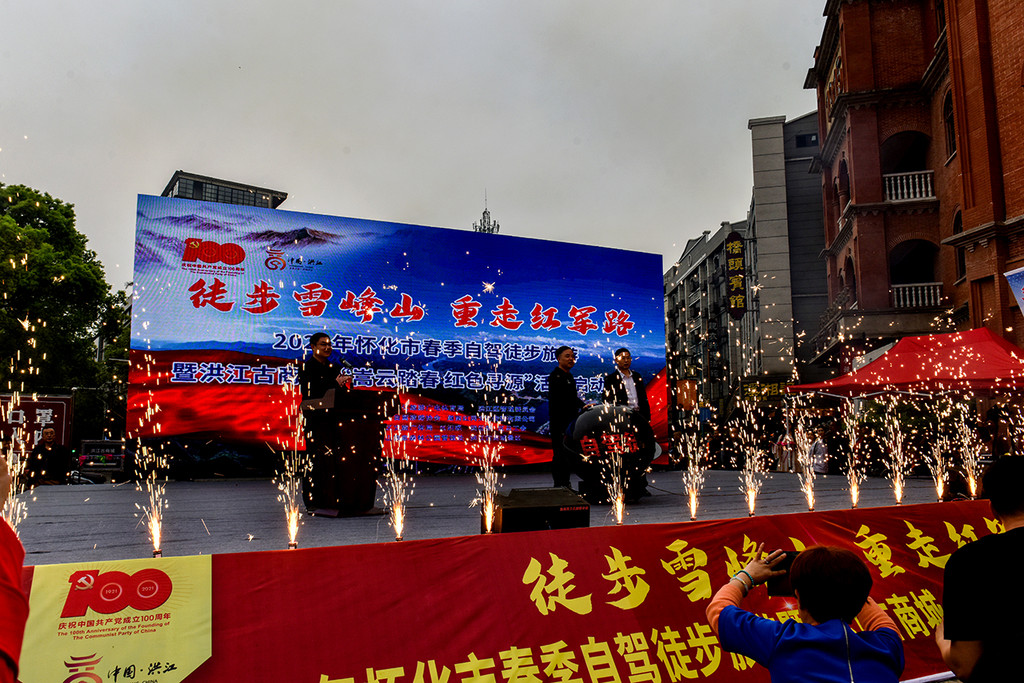 第二天的正式行程从皇都侗寨开始,不过,早起正好遇上“徒步雪峰山 重走红军路”2021年怀化市春季自驾徒步旅游暨洪江古商城•“嵩云踏春 红色寻源”活动的启动仪式,也跑去凑了个热闹。