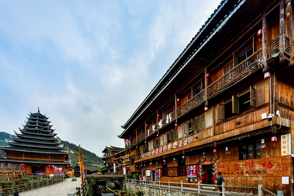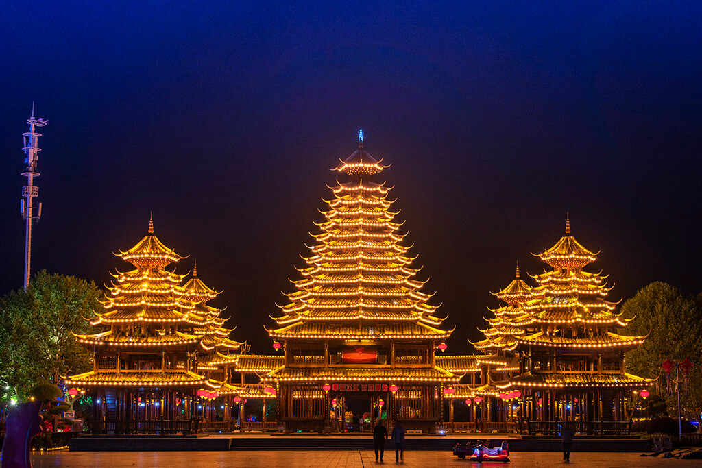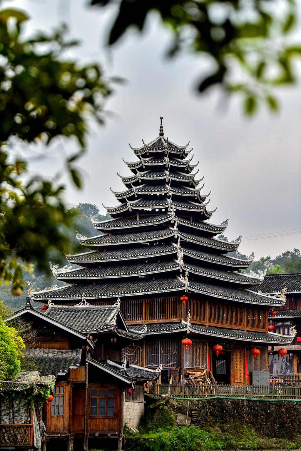 侗乡鼓楼,这个形似宝塔的建筑是侗族人的宝贝,结构精巧,造型美观。